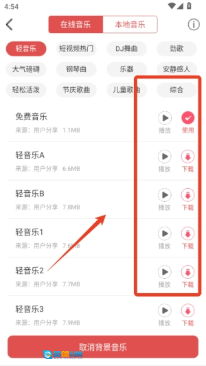 3、能够为配音添加背景音乐,从曲库中挑选风格匹配的,并且可以调整音乐与人声的音量比例。