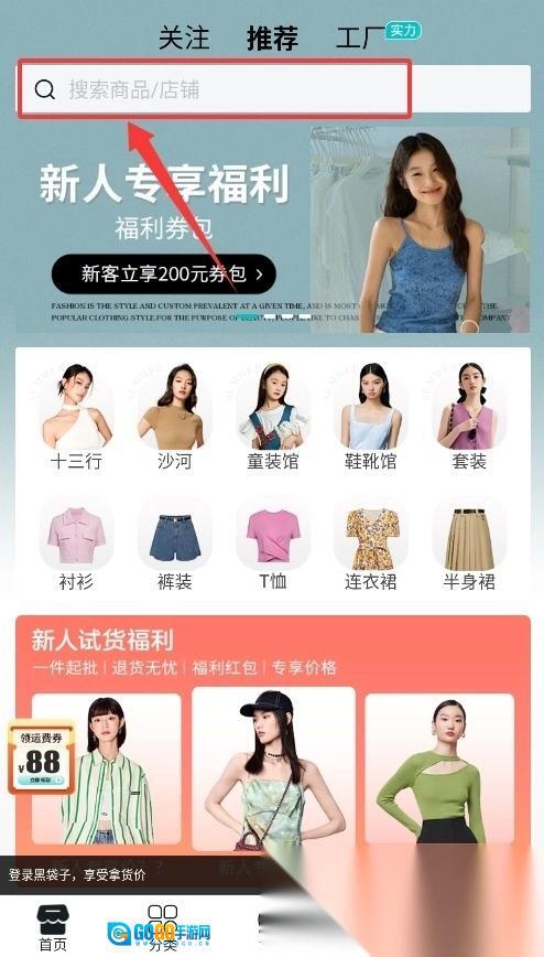 2、在首页的搜索框里输入商品关键词或者店铺名称,筛选出需要的商品后点击进入详情页面。