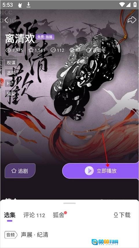 2、进入该广播剧的详情页面后,点击“立即播放”按钮。