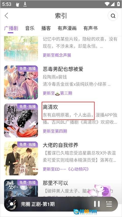 1、在本站漫播广播剧平台,打开后进入用户界面,挑选一部广播剧并点击进入。
