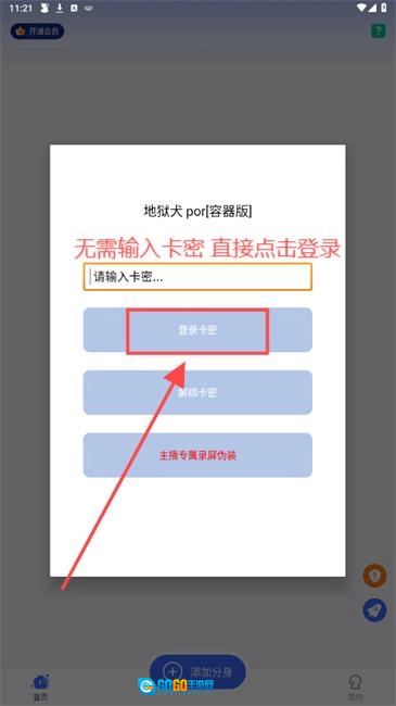 3、无需输入卡密,点击“登录卡密”按钮直接进入;