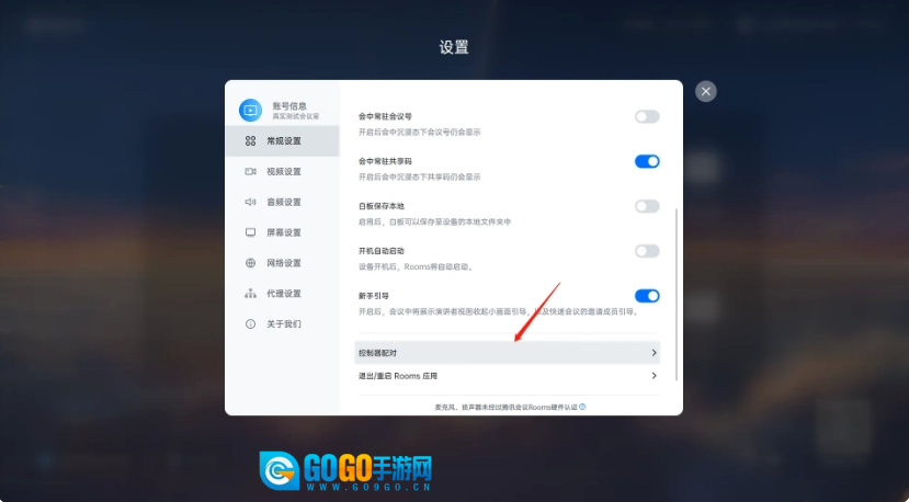 1. 在Rooms界面的右下角找到设置按钮并点击,进入【常规设置】页面,接着选择【控制器配对】选项。