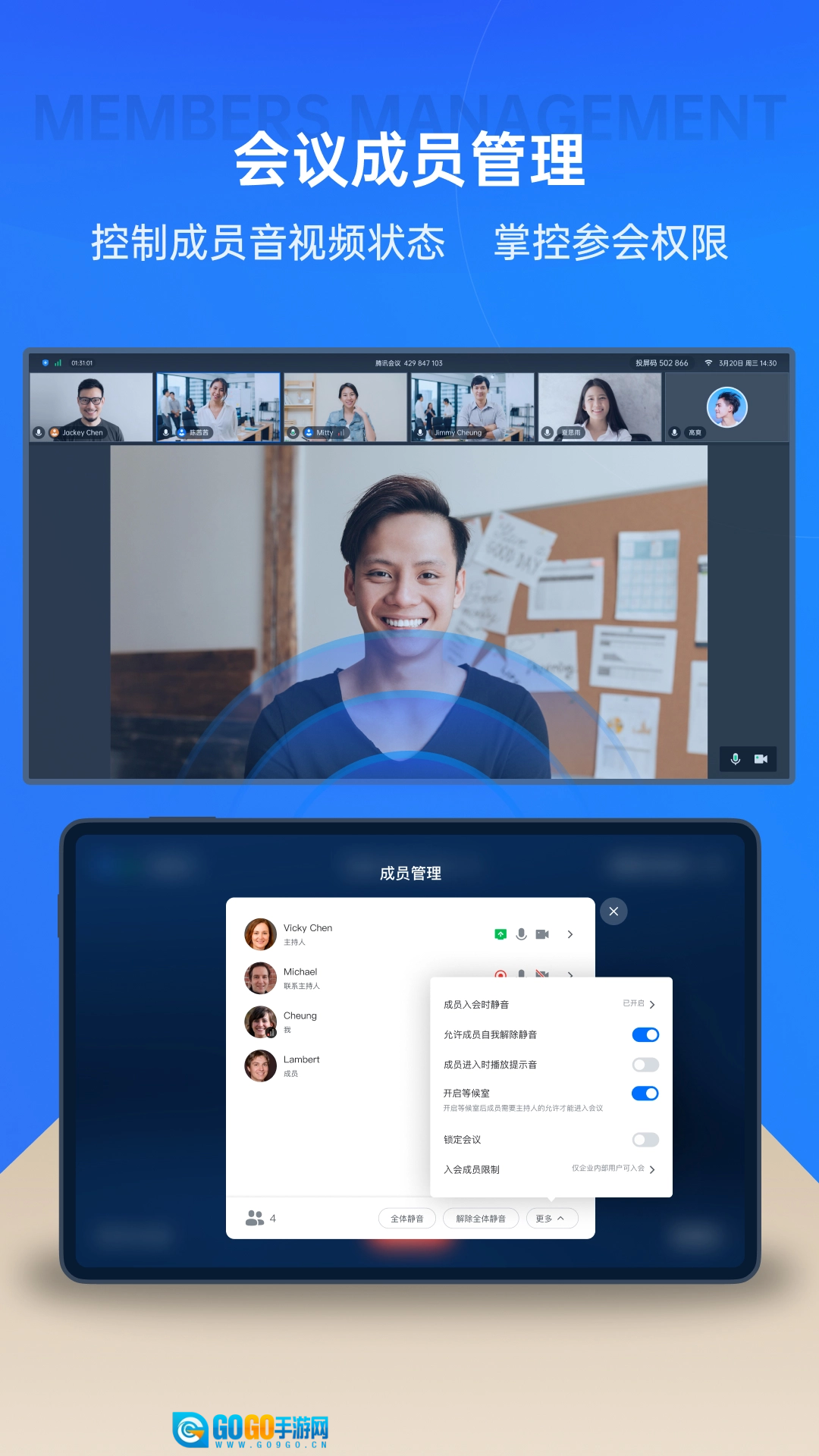- 通过直观的成员管理界面,轻松掌控参会权限。