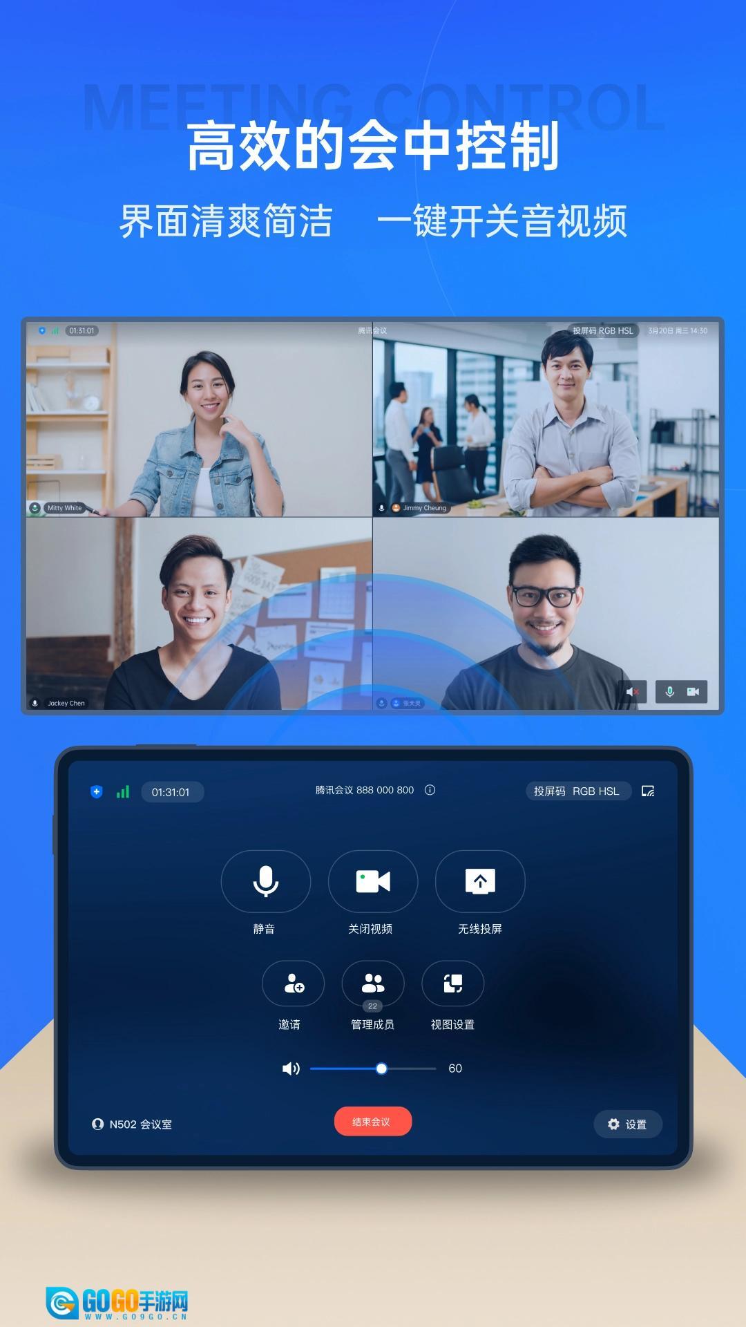 - 界面简洁,音视频控制高效便捷;