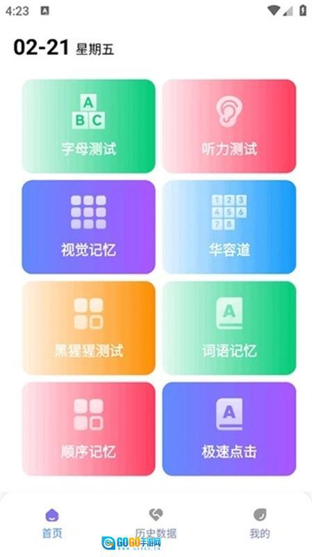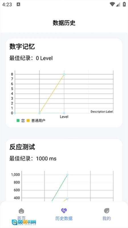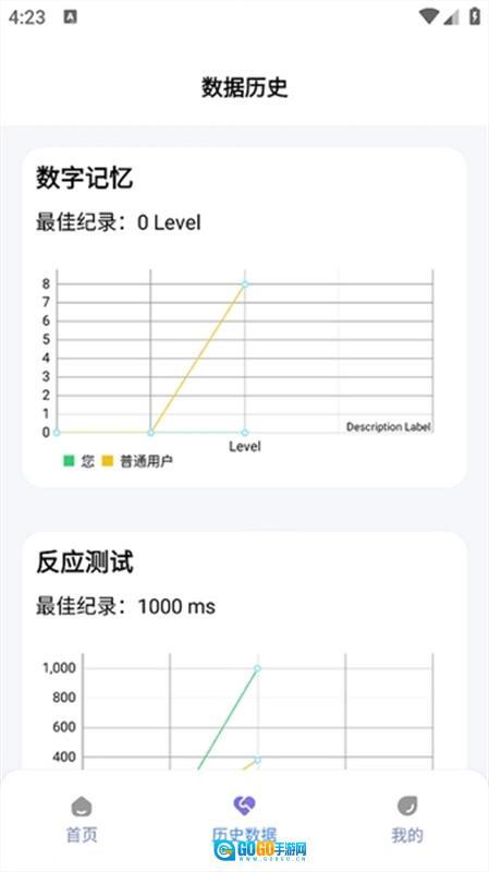 2、每一轮测试结束后,您都能查看自己的成绩。点击“历史数据”按钮,就能看到历史成绩的曲线图。要是想刷新纪录,只要再次点击对应的测试就行。