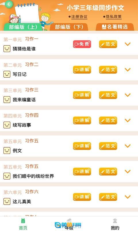 2、回到主界面后,点击「首页」选项,就能查看当前年级的写作任务,点击题目即可进入具体的练习内容。