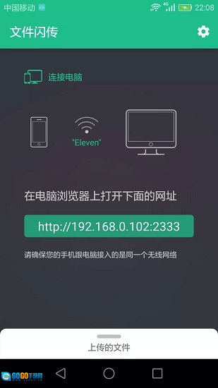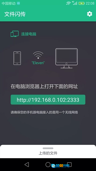 1、打开文件闪传,让手机、电脑连接同一个WiFi