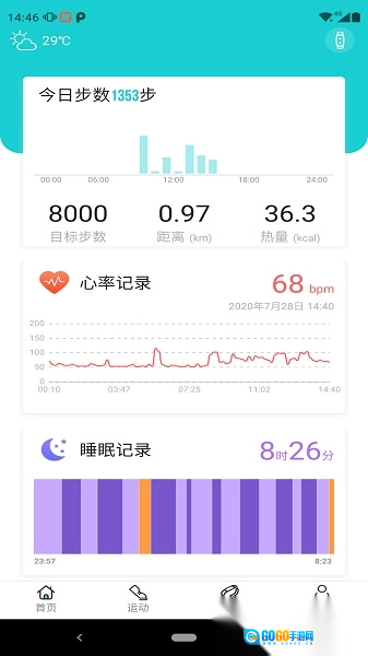3. 每日步数统计可精确到米,还能查看24小时的动态心率曲线;