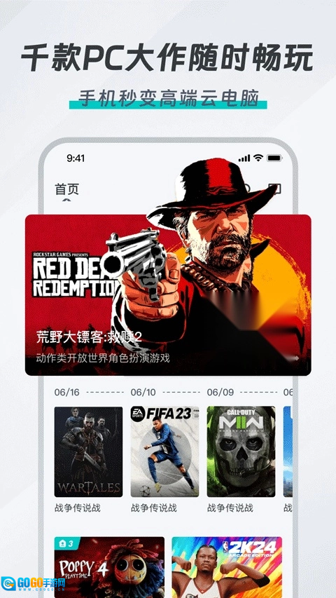 2、在首页则展示了各种热门的云游戏推荐。