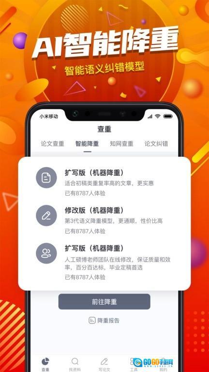 对于正在撰写学术论文的学生和研究人员而言,一款高效且可靠的查重工具极为关键。这款专业的论文查重应用能够提供从初稿到定稿的全流程服务,除了具备基础的查重功能外,还可实现智能降重与纠错,助力用户提高论文质量。它的特色在于运用先进的动态指纹扫描技术,并结合海量学术资源库,从而保证检测结果既快速又准确。应用内还配备了丰富的文献资料与写作模板,无论是查找参考资料还是构建论文框架都十分便利。目前该软件设有免费版本以及更为专业的付费版本,以满足不同用户的需求,感兴趣的朋友不妨进行体验。