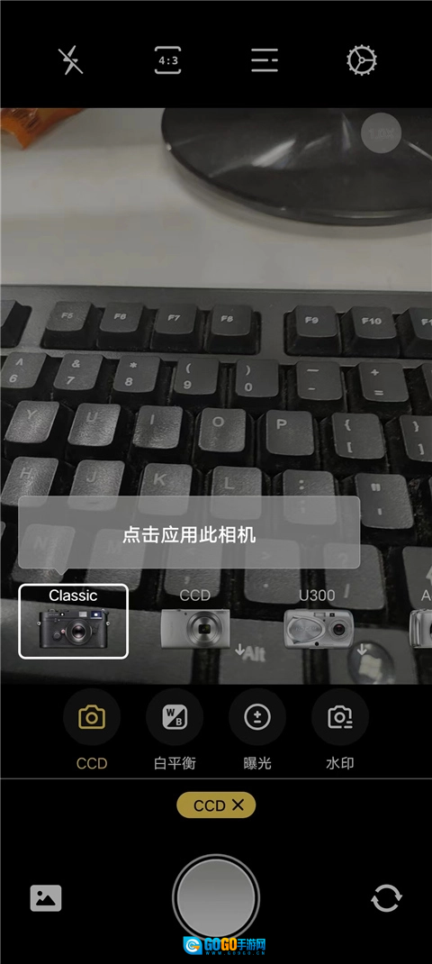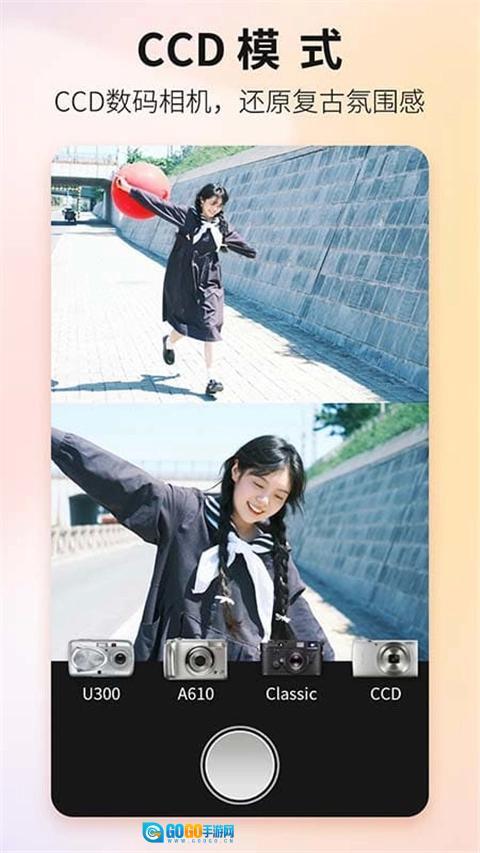 2、我们选用CCD模式,该模式还配备了种类丰富的胶片相机模拟功能,每款相机对应的滤镜效果各不相同,用户仅需点击动检界面的拍摄按钮就能完成操作。