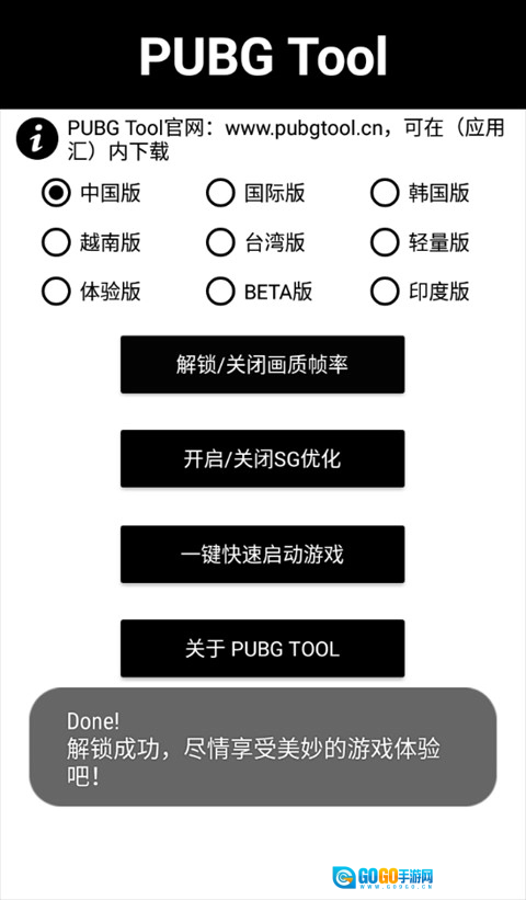 2、挑选对应的版本,点击主界面上的“解锁画质帧率”按钮,就能立刻开始体验了。