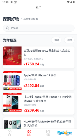 3、在热门页面中,用户既能搜索心仪好物,也能挑选优质商品办理分期下单。