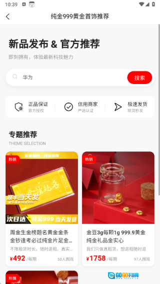 2、新品发布环节推出了不少专题推荐的商品,同时也支持商品搜索功能。