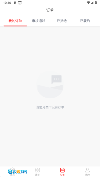 4、在订单页面,你可以查看我的订单、审核通过、已拒绝、已履约等相关信息。