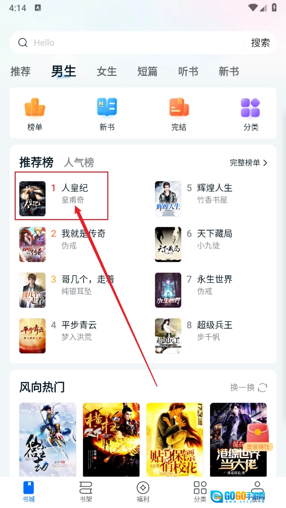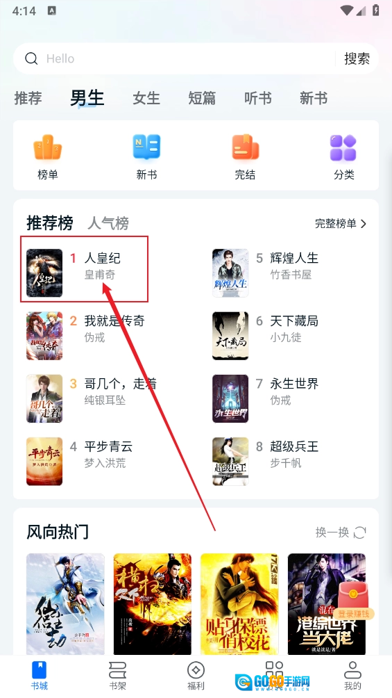 2.在书城中通过浏览或搜索的方式找到心仪的小说后,点击进入其详情页面。