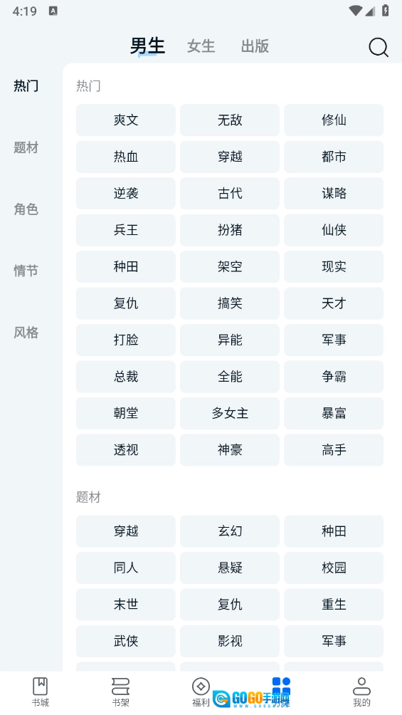 1.安装软件后,一键打开并进入书城界面。