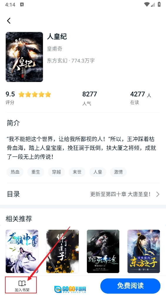 3.进入详情页后,点击左下角的“加入书架”按钮,就能把小说添加到个人书架里了。