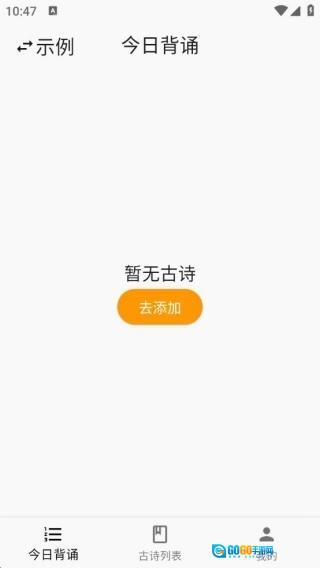 1、进入今日背诵古诗界面后,若需添加待背诵的古诗,点击“去添加”按钮即可。