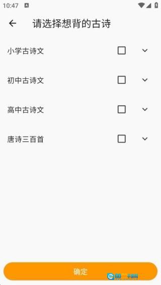 2、进入添加界面后,可选择希望背诵的古诗,可选范围包括小学、初中、高中阶段的古诗以及《唐诗三百首》。