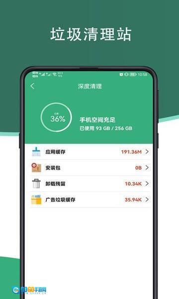 1、【垃圾清运】对手机垃圾进行深度清理,让手机界面更整洁,运行更流畅;