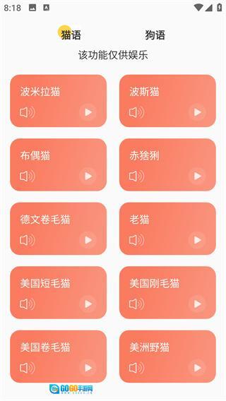 2、点击首页的语言栏目,进入后就能查看各类猫语以及狗语。
