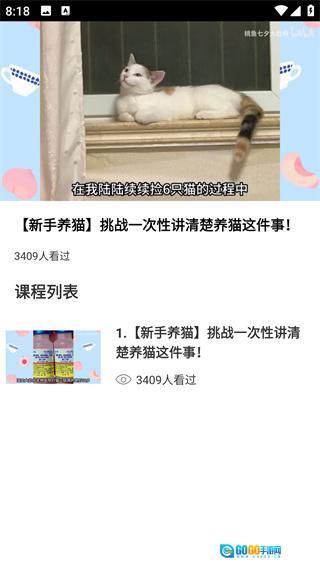 3、点击首页的养猫指南,就能查看视频讲解的养猫知识点。