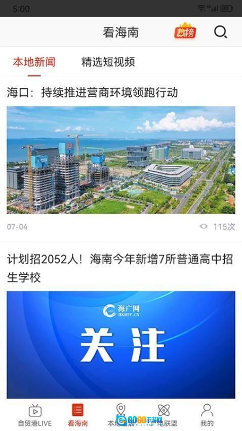 1、第一步先打开最海南应用,在首页底部的导航栏里找到“看海南”频道的入口并点击,这样就能进入到海南本地资讯的聚合页面了。