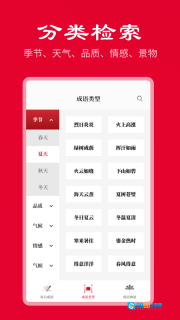 中华成语词典是一款功能强大的词典软件,它收录了海量成语,涵盖现代汉语成语、考纲成语、日常成语等类别,丰富的词库能帮助用户获得良好的成语学习效果;软件为每个成语都提供了详细注释,用户可随时查看,深入了解成语的具体含义,从而在更深层面学习成语;此外,用户还能根据成语分类快速查找所需内容,分类包括季节、天气、品质、情感、景物、动物、情绪等,通过自由检索大大节省了查找时间。