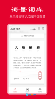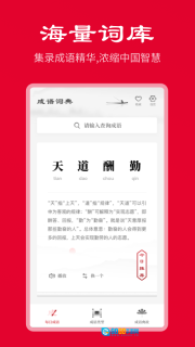 1、海量权威词库:收录三万余条成语,均源自《汉语大词典》《成语大辞典》等经典参考书籍,不仅释义精准,相关引用也十分详尽。
