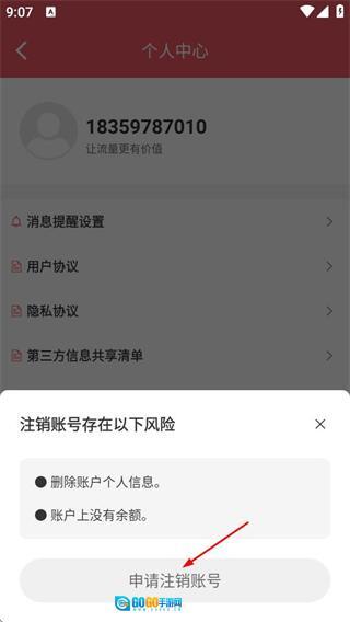 3、在个人中心页面点击注销账号后,会弹出注销账号的风险提示框。