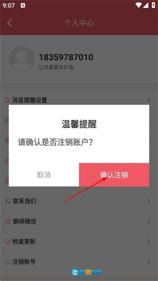 5、在提醒弹窗中点击确认注销,完成账号注销操作。
