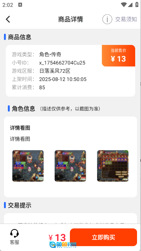 2、游戏账号交易可随时开展,这里提供多样的交易方式,能让您在绝对安全的环境中完成交易。