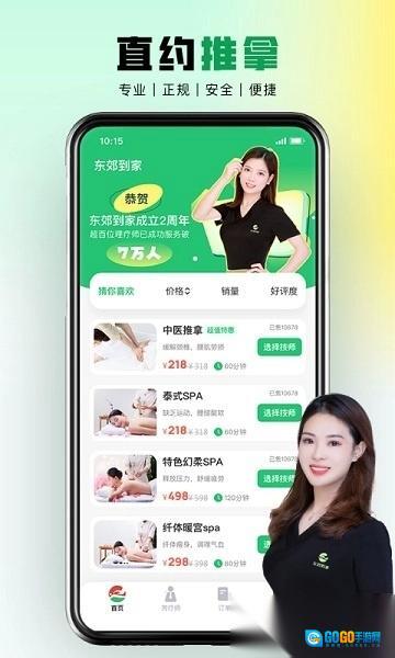 支持全天候快速预约,在线完成结算后服务将立即安排;系统会自动对订单记录进行归类,历史服务的详细情况可随时查询;涵盖中式推拿、泰式SPA等十多种项目,针对肩颈腰背等身体部位提供专门的理疗方案。