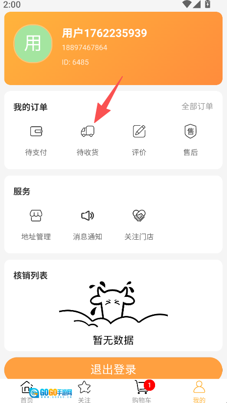 3、进入我的,查看待收货订单,跟踪订单状态。