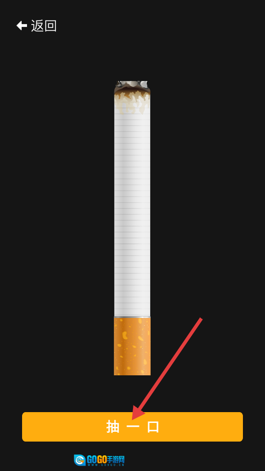 3、进入模拟抽烟界面后,点击【抽一口】按钮,即可触发模拟抽烟的动作。