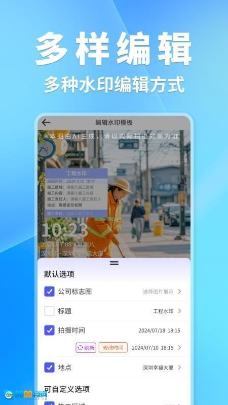 3、智能水印模板包含天气、地点、时间、分贝、海拔、速度等信息,这些内容会自动添加到照片中。