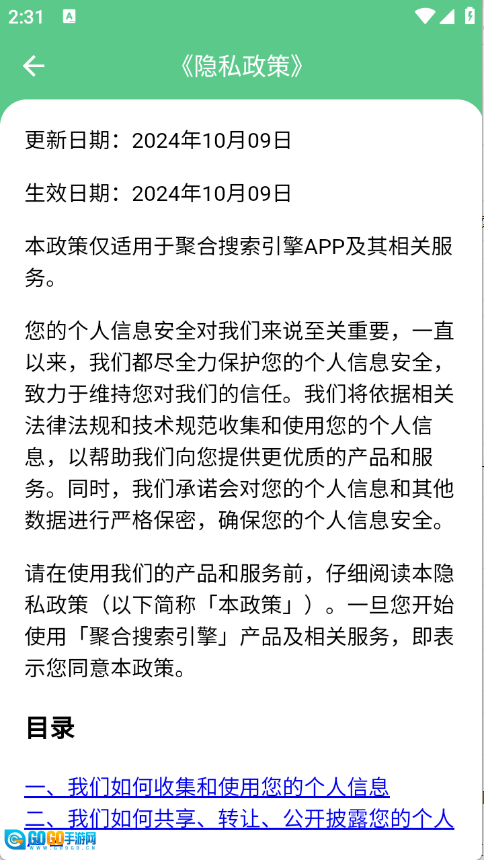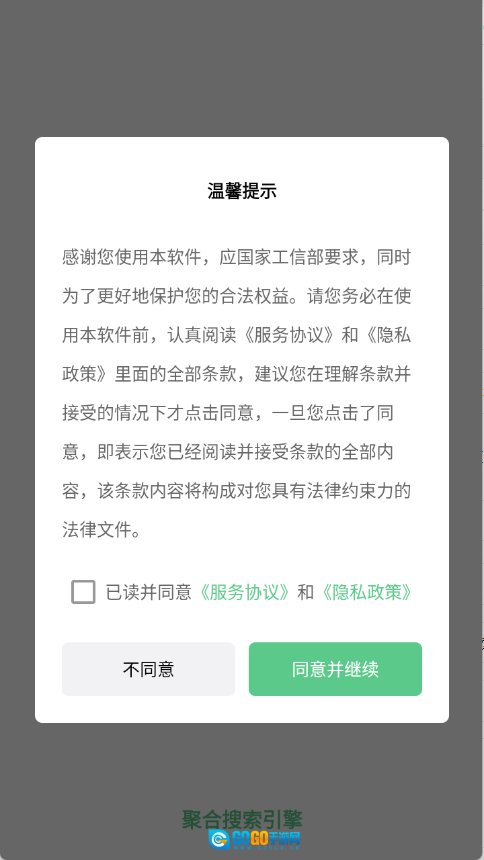 1、好聚合搜索引擎,同意隐私政策与用户协议。