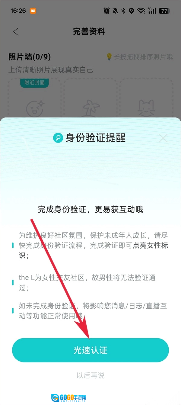 4、点击光速认证