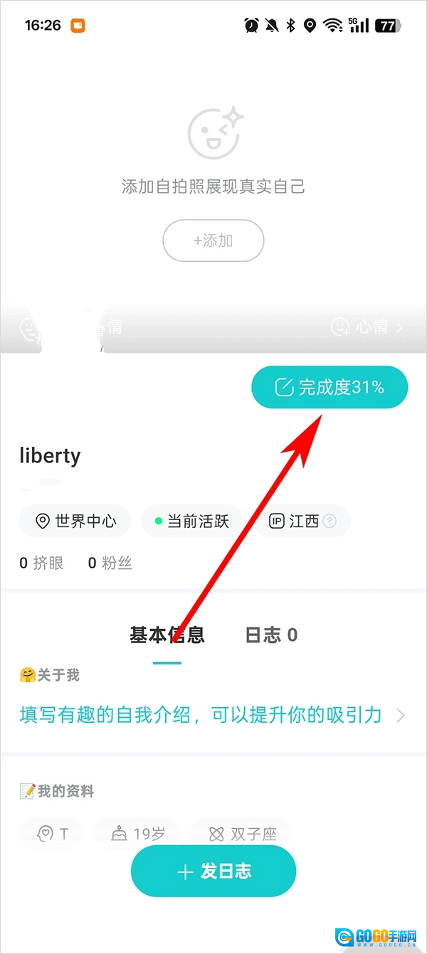 2、进入主页之后,点击完成度,去添加身份信息