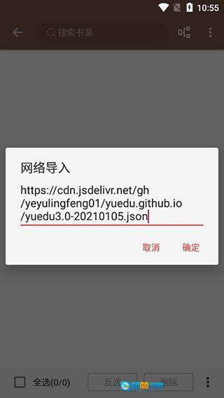 3、将上面的书源粘贴复制到软件界面中,点击确定;