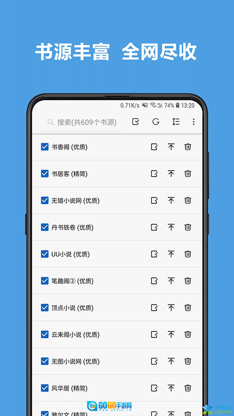 4、就能看到下面所有的书源,你可以自己选择进行导入;