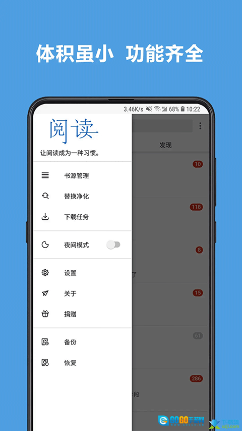 阅读将为用户配备专业的书源阅读器,助力用户通过软件便捷获取丰富阅读资源。在软件内,用户仅需上传书源就能开启阅读;阅读过程中,系统会持续提供最新书源链接,拓宽用户的阅读资源获取渠道。用户可自由切换书源,搜索更多心仪的阅读内容。此外,软件还设有多种不同板块,方便用户轻松找到更感兴趣的阅读资源。