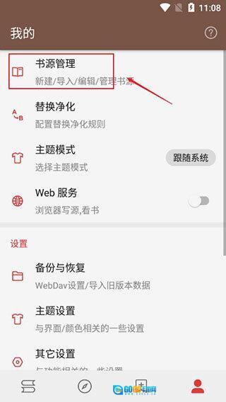 1、在本站打开软件,点击我的,进入书源管理界面;