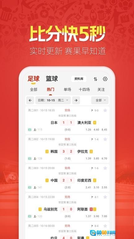 实时更新的足篮球比分,获取一手赛果;