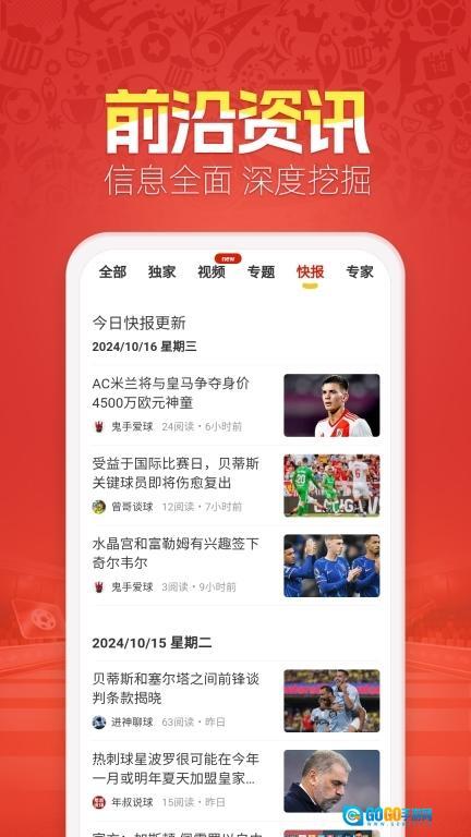 每日前沿的足篮球资讯,及时获取赛事各阶段信息;