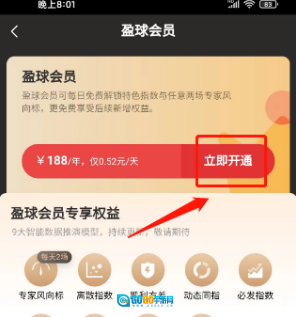 第三步:进入盈球会员窗口,点击立即开通。