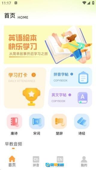 2、英语与拼音的学习都运用趣味模式,结合音频学习、字帖练习等方式,以此调动学习者的主动学习兴趣。