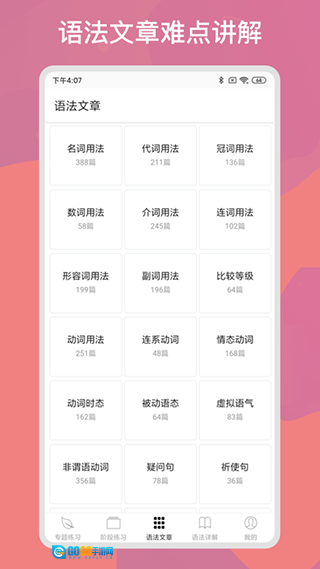 2、用户能够依据自身的学习需求开展个性化练习,挑选适宜的练习模式,针对词汇、语法、听力、阅读等方面进行练习。