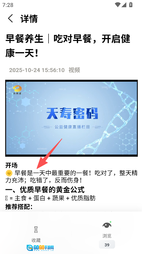 3、点击详情,学习早餐养生的黄金公式等相关知识,进而掌握养生要点。